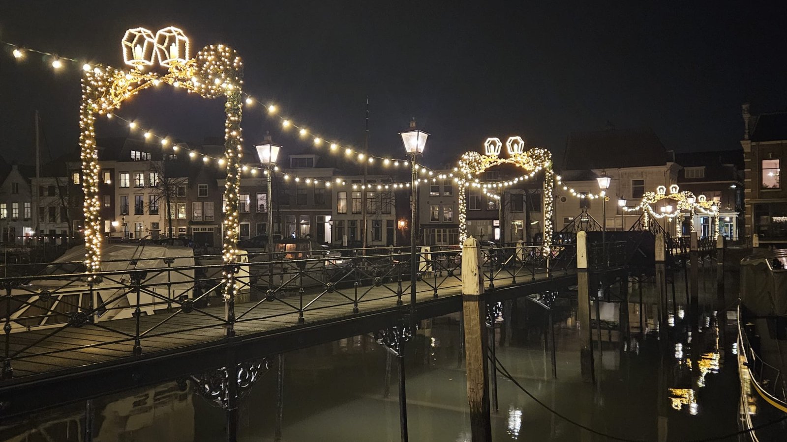 Laat de feestdagen maar komen! De binnenstad is klaar voor weken vol gezelligheid. Afgelopen week is de sfeerverlichting aangebracht in de winkelstraten en rond de havens. Blikvanger is natuurlijk de prachtige Lange IJzeren Brug.